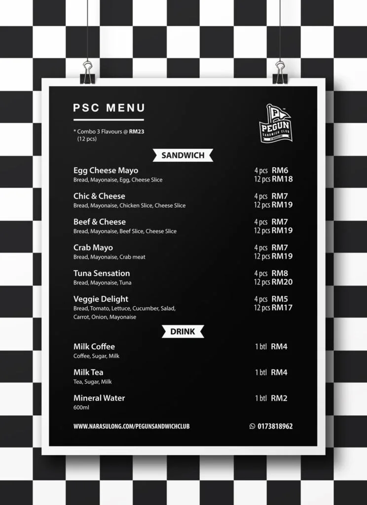 “UNITY THROUGH SANDWICH”SHOP NOWORDER NOWMENUHOW TO PURCHASE01VIA WEBSITEPlace your order by completing the order form.CLICK HERE02VIA WHATSAPPPlace your order by texting us.CLICK HEREPegun Sandwich ClubMalaysiaMERCHANDISE PSC CERAMIC MUG-GRV1 RM19.00Read moreLoading Done PSC KEY CHAIN-GRV1 RM15.00Read moreLoading Done PSC SHOPPING BAG-GRV1 RM17.00Read moreLoading Done PSC TOTE BAG-GRV1 RM25.00Read moreLoading Done ALL PRODUCTSPEGUN SANDWICH CLUB™ ORDER FORMPlease enable JavaScript in your browser to complete this form.Please enable JavaScript in your browser to complete this form.FULL NAME *NICK NAME *EMAIL *CONTACT NUMBER *PACK TYPE *-SELECT-4 pcs12 pcsSANDWICH *-SELECT-Egg MayoChic & CheeseBeef & CheeseCrab MayoTuna SensationVeggie DelightDRINK *-SELECT-Milk CoffeeBlack CoffeeMilk TeaMineral WaterREMARKSWebsiteSENDFAQWhat is the Best Selling menu?Egg MayoHow about drinks?Milk Coffee
